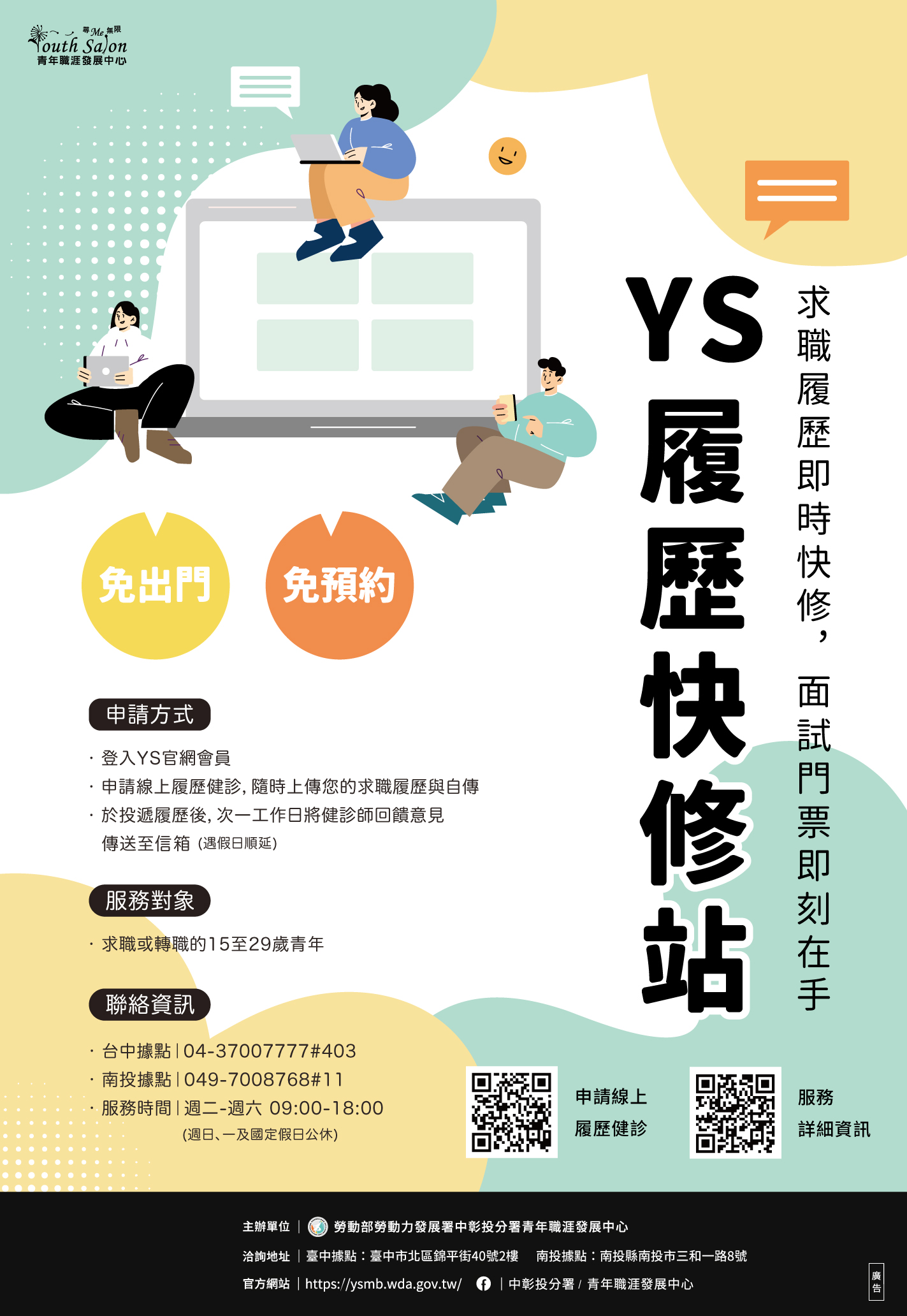 3.本國籍15至29歲且【就職】於臺中市、彰化縣市、