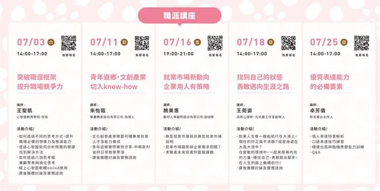 許多職涯相關的活動皆免費報名,又可以讓你收穫滿滿喔~