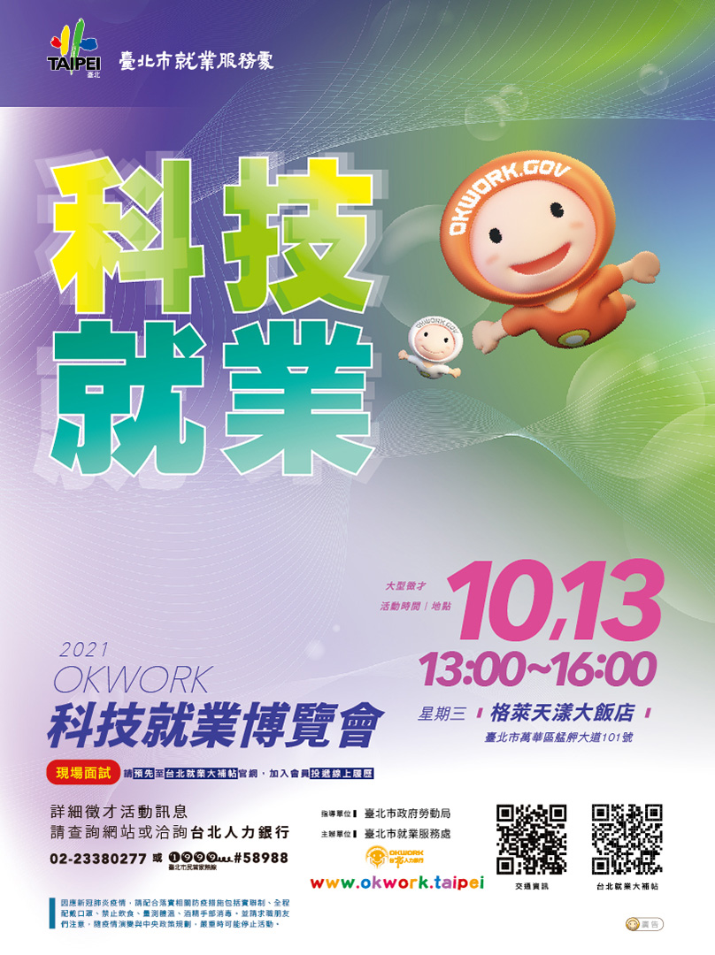 | 就業輔導組 | 臺北市就業服務處「科技就業博覽會」10/13(三) | DM |