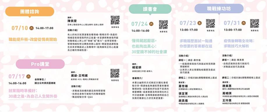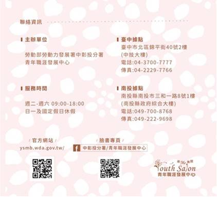 | 就業輔導組 | 勞動部勞動力發展署中彰投分署青年職涯發展中心★YS活動快訊★7月線上課程陪伴你的宅生活 | DM1 DM2 DM3 DM4 DM5 |