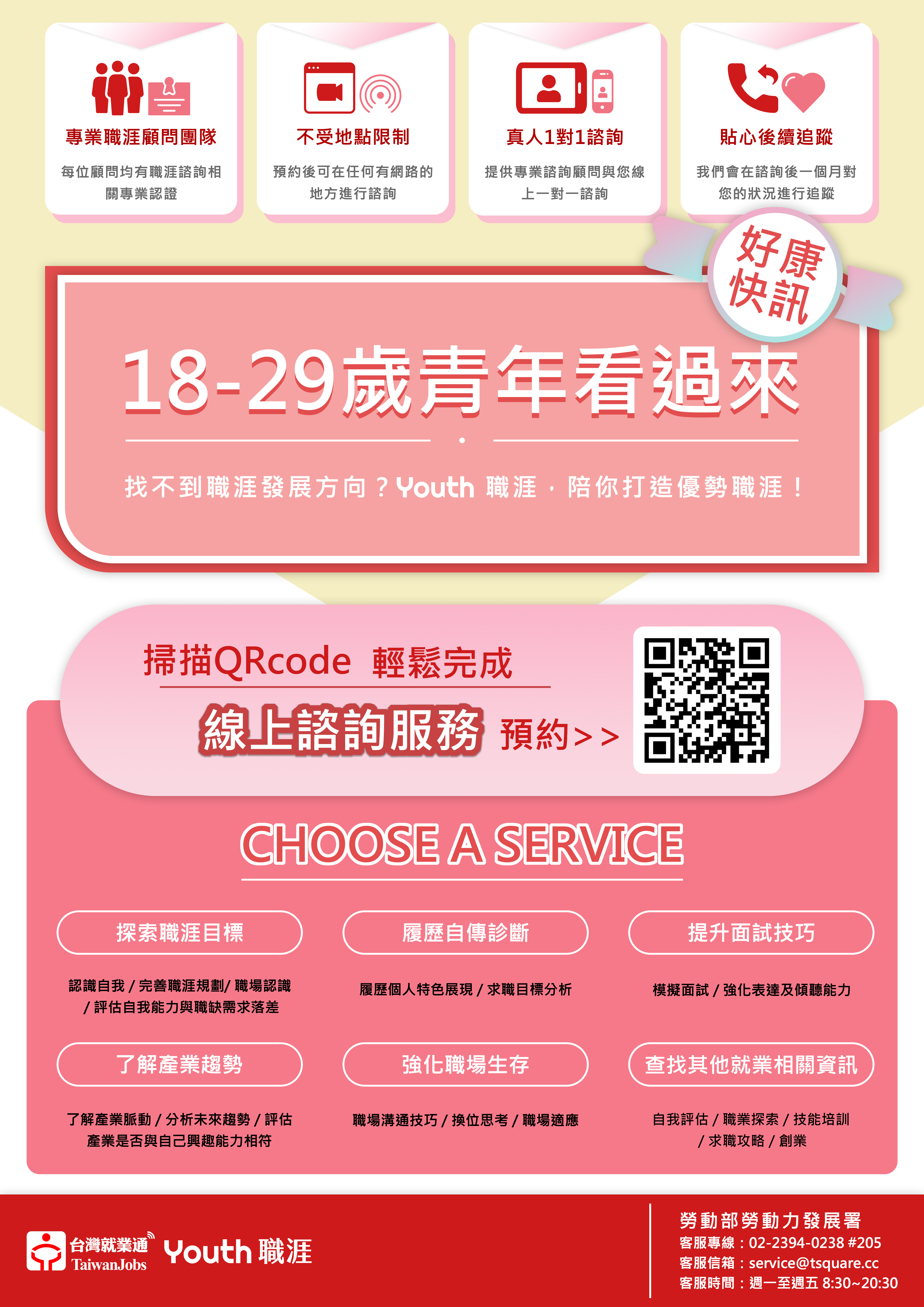| 就業輔導組 | 勞動力發展署專為青年建置「Youth 職涯」就業諮詢平臺 熱門 | DM 懶人包 |