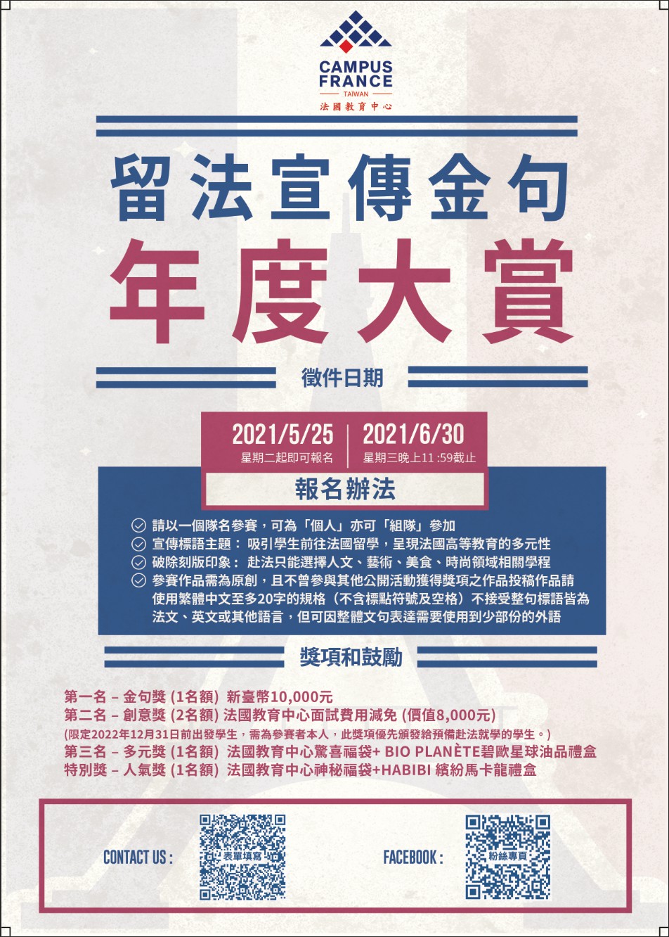 | 就業輔導組 | 法國教育中心《留法宣傳金句年度大賞》創意影片競賽 | DM |