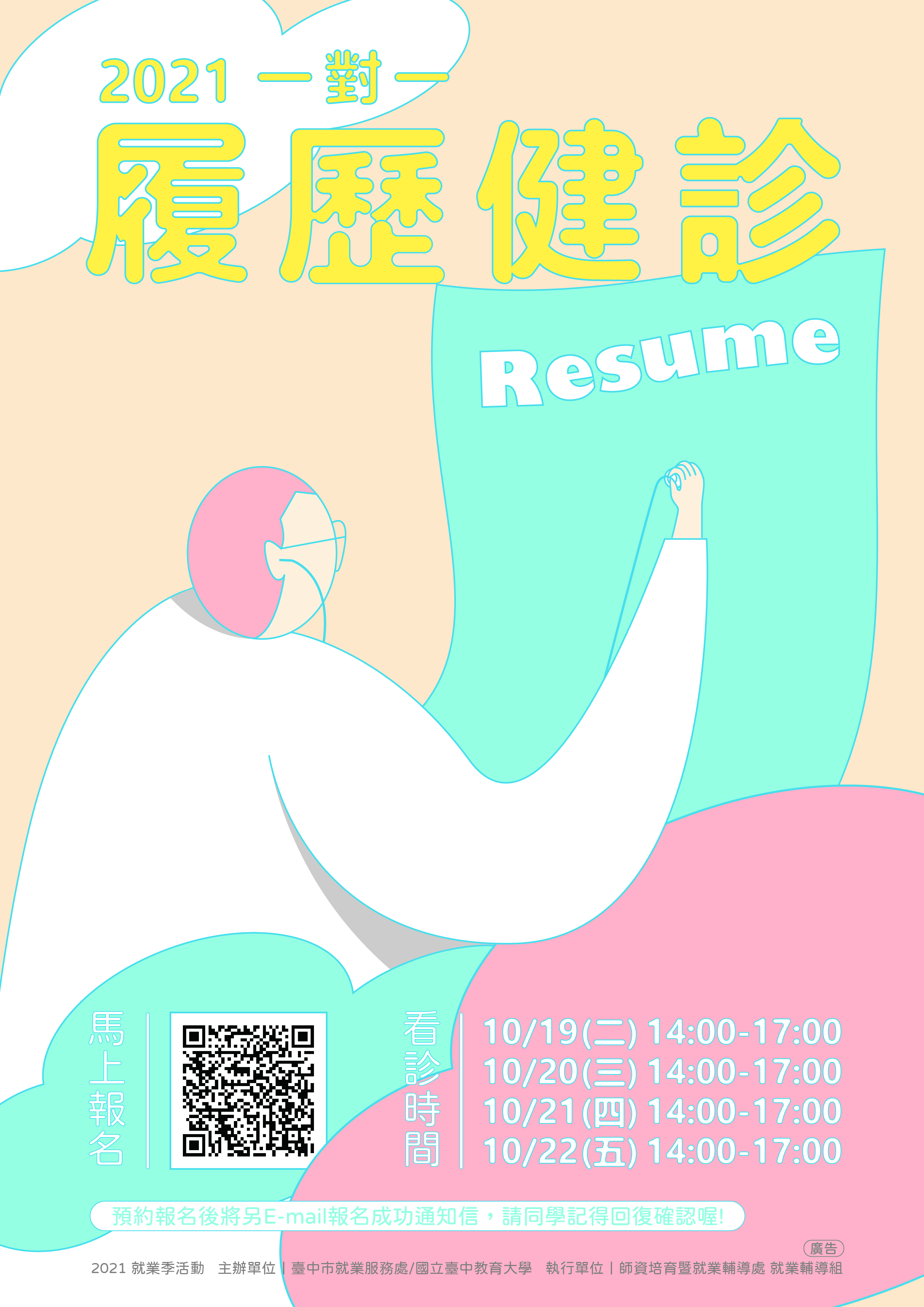 | 就業輔導組 | 110學年度第1學期「一對一履歷自傳健診」歡迎線上預約報名! | DM |